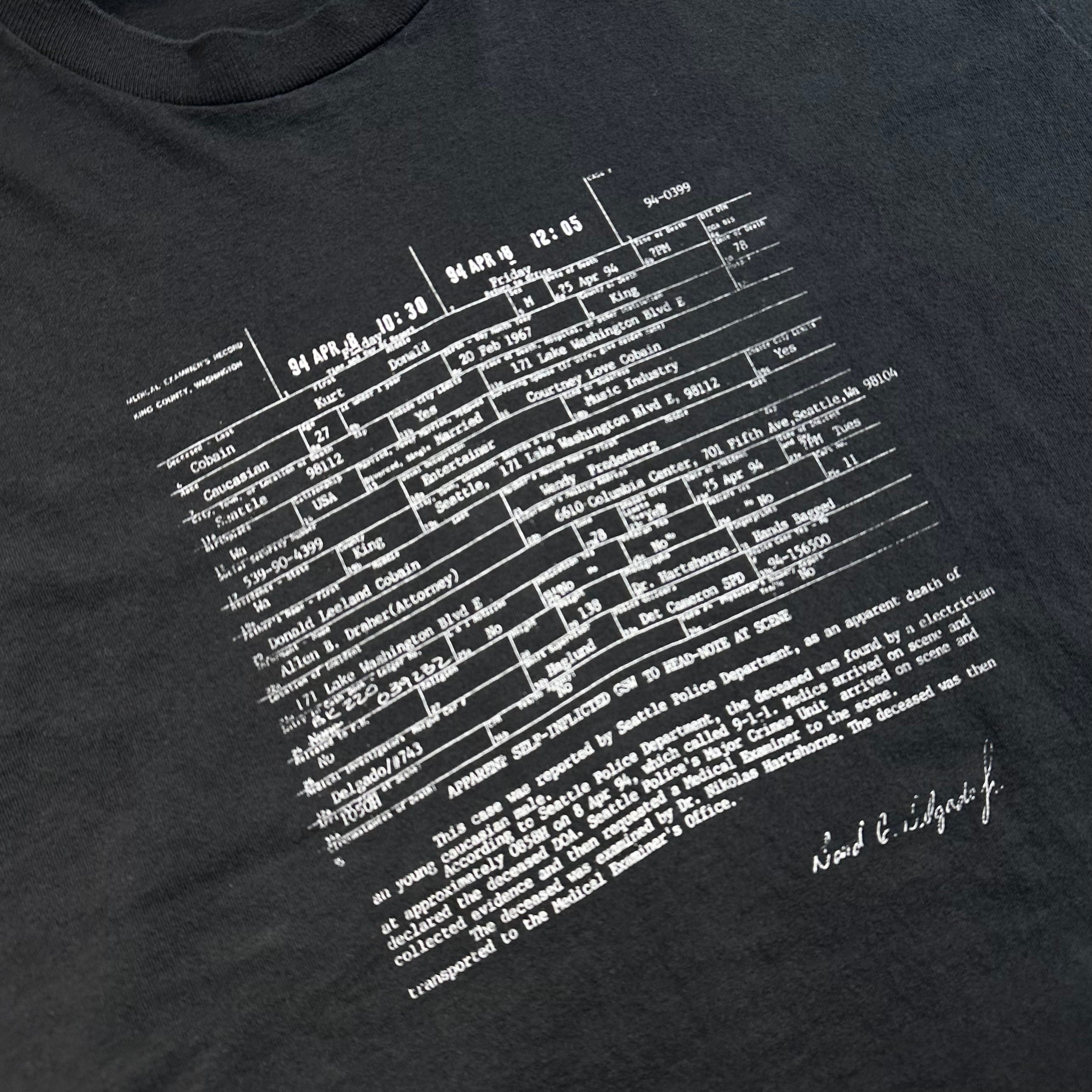90's Kurt Cobain "死亡診断書" T-Shirt